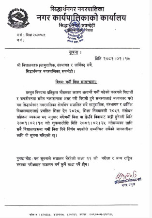 घोषणा गरिएको सुविधा बराबरको उक्त रकम दुवै जिल्लाको विपद् व्यवस्थापन कोष वा नेपाल सरकारले तोकेको मापदण्ड अनुसार उपलब्ध गराइने सिद्धार्थनगर नगरपालिकाको कार्यालयले जनाएको छ ।